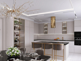 Люстра в интерьере кухни-столовой